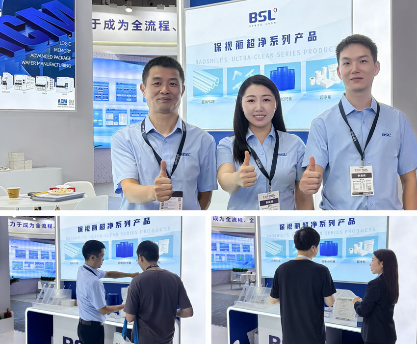 Các sản phẩm trưng bày của Baoshili bao gồm Ống PFA siêu sạch , Đầu nối PFA siêu sạch , Thùng HDPE siêu sạch , Và Khăn lau phòng sạch Tại chỗ, đội ngũ kỹ thuật của Baoshili đã trao đổi chuyên sâu với nhiều chuyên gia trong ngành và các nhà sản xuất thiết bị về ứng dụng vật liệu flo siêu tinh khiết trong các quy trình đầu vào của sản xuất tiên tiến. Đặc biệt, nhắm vào nhu cầu truyền dẫn hóa chất trong các quy trình then chốt như làm sạch, khắc và lắng đọng, Baoshili đã chứng minh được những ưu điểm kỹ thuật của các sản phẩm thay thế nội địa.